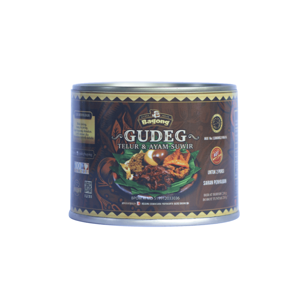 Gudeg Bagong hadir dalam kemasan praktis untuk mengenalkan cita rasa makanan khas Jogja ke seluruh dunia. Terinspirasi dari keinginan para penikmat gudeg untuk membawa oleh-oleh khas Jogja, kini Anda dapat menikmati kelezatan gudeg dalam kemasan kaleng yang sudah bersertifikat BPOM dan Halal. Dengan proses pengalengan modern dan higienis, Gudeg Bagong terbukti mampu mempertahankan cita rasa otentik yang menggugah selera. Cocok sebagai bingkisan dan hidangan istimewa untuk sanak saudara, teman, dan kolega di mana pun berada.