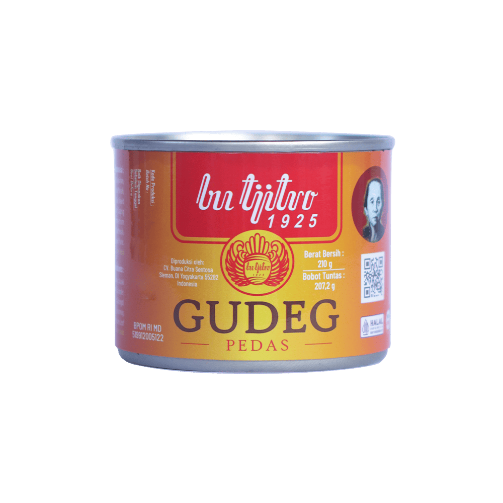 Gudeg Kaleng Bu Tjitro 1925 adalah inovasi praktis dari gudeg legendaris Jogja yang berdiri sejak 1925. Awalnya gudeg hanya bisa dibawa dalam kendil atau besek yang kurang praktis, kini hadir dalam kemasan kaleng yang tahan lama. Cita rasanya tetap autentik, lengkap dengan lauk ayam, telur bebek, krecek, kacang tolo, dan areh khas Jogja.
