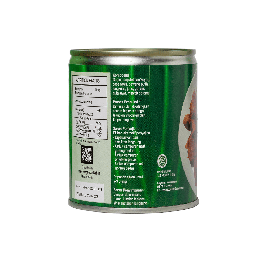 Oseng Mercon Bu Narti adalah jawaban buat yang doyan pedas nagih ala Jogja. Dibuat dengan bumbu rempah pilihan, rasanya pedas banget tapi tetap bikin ketagihan. Hadir dalam kemasan praktis dan tahan lama, jadi gampang banget disajikan kapan pun. Dijamin Halal, aman dinikmati semua kalangan tanpa khawatir. Cocok banget dijadikan oleh-oleh unik buat keluarga, sahabat, atau teman kantor. Mau kirim ke luar kota juga gampang, karena aman dikirim ke mana aja di seluruh Indonesia. Jadi meski jauh dari Jogja, sensasi pedas khas Bu Narti tetap bisa dinikmati kapan saja.