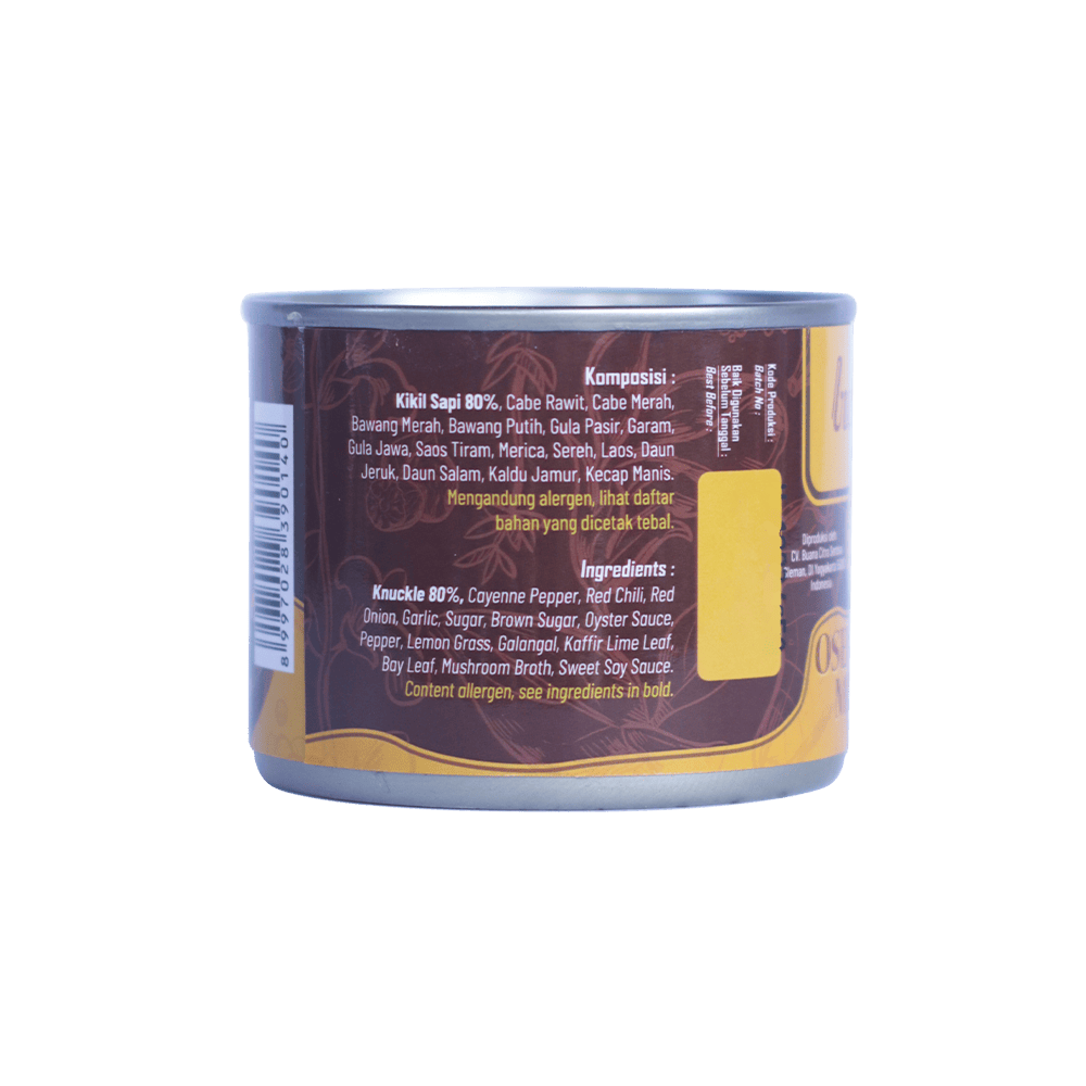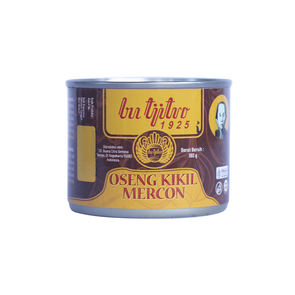 Oseng Mercon Kikil Sapi Kaleng Bu Tjitro 1925 adalah inovasi praktis dari Bu Tjitro yang merupakan legenda kuliner Jogja yang berdiri sejak 1925. Proses pengolahan menggunakan teknologi pangan modern dengan sistem sterilisasi komersial sehingga tetap higienis. Produk ini sudah memiliki sertifikat BPOM dan Halal MUI, jadi aman dan berkualitas. Oseng Mercon Kikil Sapi Bu Tjitro 1925 bisa bertahan 12–18 bulan tanpa bahan pengawet, cocok untuk oleh-oleh maupun dikonsumsi sendiri.