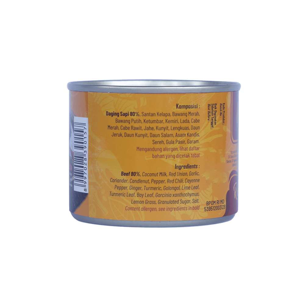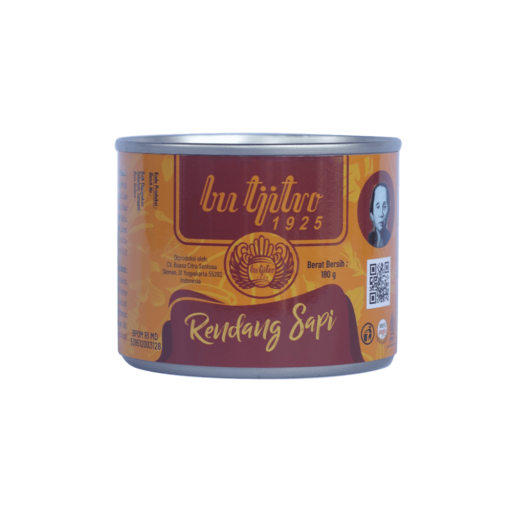 Rendang Daging Sapi Kaleng Bu Tjitro 1925 adalah inovasi praktis dari Bu Tjitro yang merupakan legenda kuliner Jogja yang berdiri sejak 1925. Proses pengolahan menggunakan teknologi pangan modern dengan sistem sterilisasi komersial sehingga tetap higienis. Produk ini sudah memiliki sertifikat BPOM dan Halal MUI, jadi aman dan berkualitas.Rendang Daging Sapi Bu Tjitro 1925 bisa bertahan 12–18 bulan tanpa bahan pengawet, cocok untuk oleh-oleh maupun dikonsumsi sendiri.